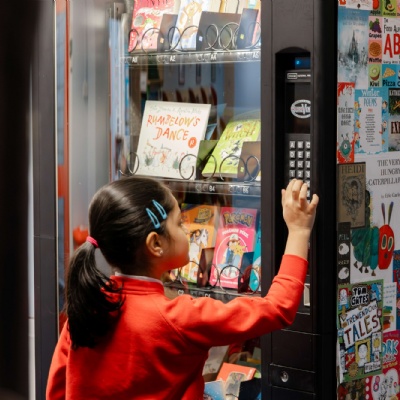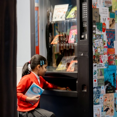 We also celebrate and reward reading at home. Children who regularly read outside of school are recognised for their efforts, helping to build positive reading habits. One of the ways we reward our readers is through our special book vending machine, DORIS. When children reach a set number of reads at home, they receive a DORIS token which they can use to choose their very own book from the vending machine to keep. This exciting reward encourages children to keep reading and helps them build their own personal libraries at home.